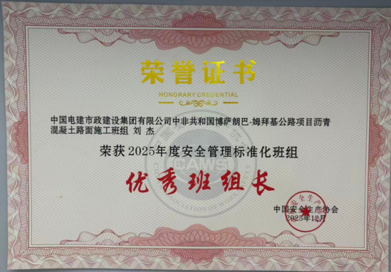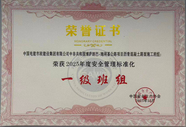 日前,公司中非共和国博萨朗巴-姆拜基公路项目沥青混凝土路面施工班组,获中国安全生产协会正式颁发的2025年度“安全管理标准化一级班组”荣誉证书,项目班组长刘杰获2025年度“安全管理标准化班组长”称号。 作为中非合作框架下的重要基础设施项目,两项目始终以“5831 班组安全屋”为核心抓手,紧扣五项基础、八大支柱、三道防线、一个目标体系要求,全面夯实责任、制度、培训、设备、台账等安全根基,规范班前会、过程管控等全流程作业,强化风险预判、隐患排查、应急处置三道防线,锚定长效安全目标。项目创新“异国师徒结对”,落实“逢培必考”与班前五分钟交底,推动安全管理落地见效,确保安全生产持续稳定。 此次国家级荣誉的斩获,既是对班组安全管理实效的最高肯定,更是公司海外安全管理硬实力的生动彰显,为海外班组安全建设树立了标杆。下一步,中西非公司将以此次获奖为契机,持续加大班组安全标准化建设力度,充分发挥分公司、项目、班组联动机制,进一步强化班组职工安全责任,筑牢安全管理“三道防线”,持续深化“5831 班组安全屋”建设,以高水平安全管理护航海外项目高质量履约。 |