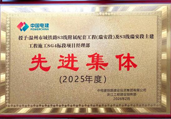 温州市域S3线项目获中电建铁路公司2025年度多项荣誉 |