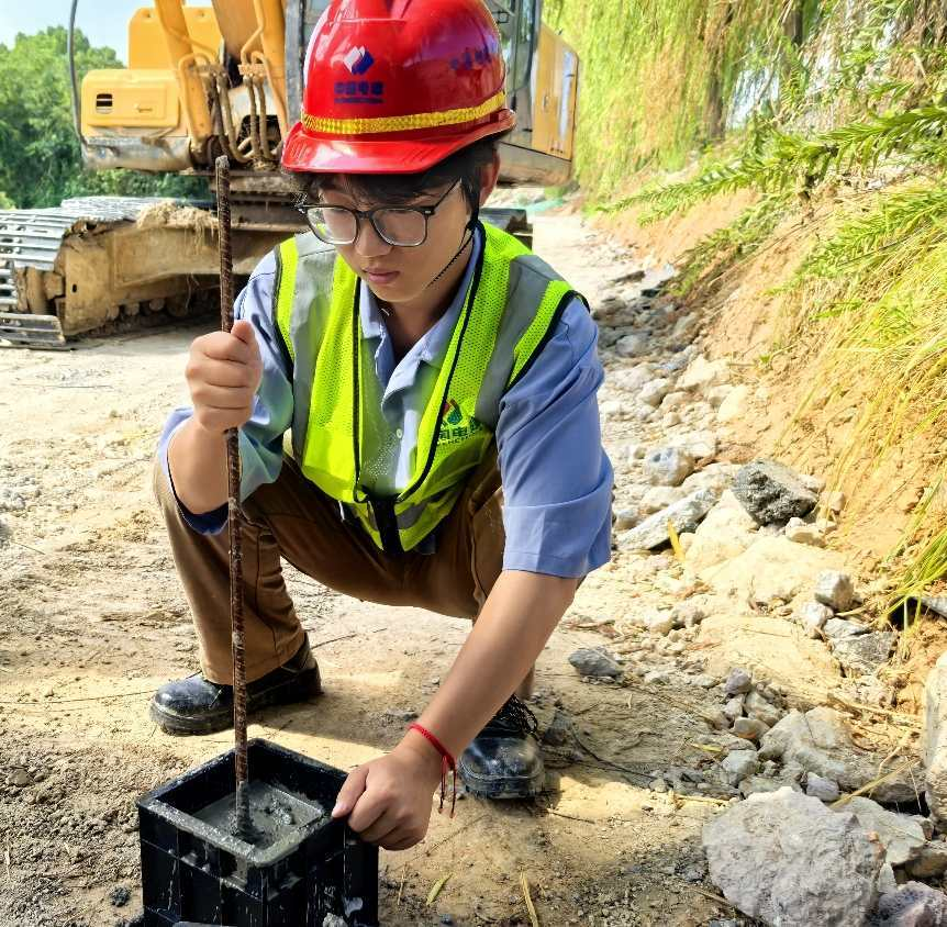 青年之字典,无‘困难’之字;青年之口头,无‘障碍’之语。 ——李大钊 每每提及土木建筑,人们首先想到的是水泥钢筋的冰冷轮廓,但我们更应该看到其背后更深刻的内核。从蛮荒自然到文明空间,从大禹治水到现代水利水电工程,这其中体现的正是流淌于中华民族血脉中的伟大技艺和创造力。而我们身为新时代的青年,更应该将这份力量传承下去,用我们的智慧与汗水在广袤大地上书写新的传奇。这份“力”,是知识铸就的理性之力,是理想燃烧的激情之力,更是负轭前行的责任之力。青年之“正当时”,恰在于以这蓬勃之力,接过历史的蓝图,在时间的河床上用青春筑起不朽的工程——不仅塑造着钢筋水泥的宏伟,更定义时代的标高。 九月的兰溪,仍是“赤日满天地,火云成山岳”。自去年毕业踏入中国电建市政集团的大门起,不知不觉已是一年。而我也来到了我的第二个项目——兰溪项目。兰溪项目给我的第一印象就是:年轻。就这样,在这样一个青春洋溢、朝气蓬勃的氛围下,我加入了新的部门——质量管理部,开启了新的征程。 初到质管部,面对密密麻麻的规范条文和大大小小的实验,我曾在心底暗自忐忑。但项目部浓厚的学习氛围和同事们的倾囊相授,很快驱散了这层迷雾。那位仅年长我四岁的部门负责人,常拍着我肩膀说:“别把困难当回事,青年人的字典里,就没这个词!质量是工程的生命线,咱们一定要守护好这条线。”白天,我们奔波于施工现场,测量仪和卡尺是我们现场的利器;夜晚,我们围坐在一起,图纸和规范则成为我们理论的根基。 热浪滚滚,灼日当空,堤顶的沥青路散发出阵阵焦糊,坝坡的草皮也耷拉着脑袋,只有那一排排高昂着头颅的垂柳和声嘶力竭的蝉鸣始终对这流金铄石的天气发出阵阵抗议。灼热的空气在肺中翻涌,而我的心情比难耐的天气还要焦灼——第一次亲手做试块。穿好反光衣,戴好安全帽,脑海里努力回忆着课本上的知识和师傅的演示。“试块制作大概分为这几个步骤:选模、取样、装料、振实、刮平。”师傅一边说着,手上比划着这几个步骤的动作,“首先选择合适尺寸的模具,并且一定要保证试模干净,均匀刷好脱模油;取样时,试样必须在浇筑地点从同一运输车中随机抽取。绝不能等到混凝土快要凝固时才取样。”师傅突然停下来,“知道为什么吗?”他看着我迷茫的眼神,笑了笑,“快要凝固就不具代表性了!取样后还要尽快进行制模,装料时要分两层装入试模,每层装料厚度要大致相等,每层还要用捣棒沿试模内壁从边缘向中心均匀插捣。”师傅指了指那些模具:“咱们是150mm标准试模,每层插捣约25-30次,并且插捣时要穿过表面进去20cm左右,第二层同样如此……大概流程就这样,你自己试一试,不懂随时问我。”我努力记着这些复杂精细的步骤,深吸一口气,准备开始试块制作。 我蹲在地上,选出这次需要用的模具,刷好脱模油;拿着小铁锹,看着搅拌车斗里的混凝土,有点不知所措。该从哪儿取来着?最后心一横,从中间部位铲了一大锹,赶紧装进试模里。接下来是最关键的一步——振捣。我小心翼翼地将振捣棒斜插入试模的混凝土中,看着气泡“咕嘟咕嘟”地冒出来,表面慢慢泛出水泥浆,同时心里默数着秒数“振久了会离析,振不够又不密实……”我紧张地想着师傅的嘱咐。手臂被震得发麻,已经分不清脸上的是汗水还是泥浆。 终于,在我手忙脚乱的操作下,完成了试块的制作。当三个表面略显粗糙但总算成型的试块摆在面前时,我长舒一口气,颇有成就感。拿起笔,郑重其事地在每个试块侧面写上型号和日期。虽然字迹歪歪扭扭,表面还沾上了油污,但这可是我的“首作”。我邀功似的把师傅找来,给他看我的“孩子”。师傅观察过后,说:“可以啊你小子,第一次做到这个程度不错,但是抹面没抹好,脱模油也放多了,下次多注意,赶紧送去养护。”我第一次真切地感受到,课本上的理论、实验室的数据,最终都凝结于这一个个试块上。这份亲手创造的、沉甸甸的责任感,就是我新岗位最好的第一课。 正是在这片火热的工地上,我真正触摸到了“青年力”的厚度。它是凌晨三点依然灯火通明的办公室里,那双紧盯施工图纸的专注眼神;是每一次严谨的报验、每一份准确的数据背后,那份对百年工程负责到底的沉甸甸的担当。 山河为证,岁月为名。“宣父犹能畏后生,丈夫未可轻年少”,不要因为年轻经验不足而妄自菲薄,也不要因为一点小小的成就沾沾自喜。吾辈青年,立于建设一线,当以汗水为墨,以实干为笔,将最美的年华篆刻进这宏伟的蓝图里,恰逢时代正好,我们正年轻! |