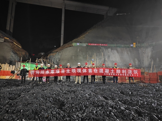 10月19日,野马川水库项目主坝首仓混凝土成功入仓,至10月22日,约1800立方混凝土成功浇筑完成,标志着主坝施工进入了主体混凝土浇筑施工阶段。